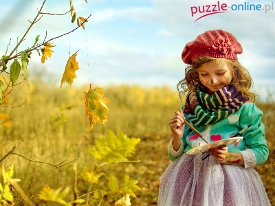 Puzzle Liście, Mała, Dziewczynka, Farby