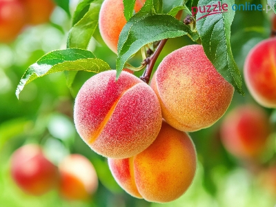 Puzzle Gałązka, Owoce, Brzoskwinie, Liście