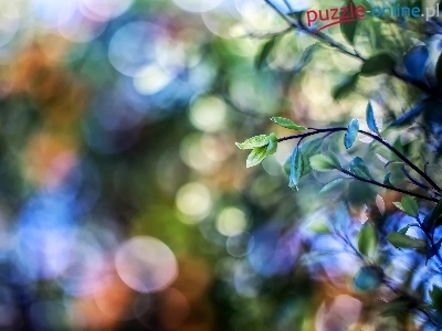 Puzzle Światło, Gałązki, Liście, Bokeh