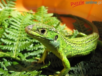 Puzzle Liście, Zielona, Jaszczurka, Paproci