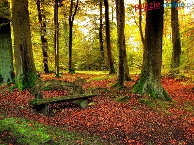 Puzzle Liście, Las, Jesienne, Ławka