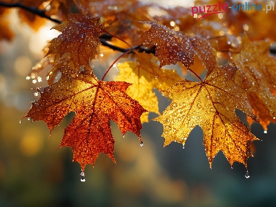 Krople, Mokre, Jesienne, Liście, Grafika AI, Klon