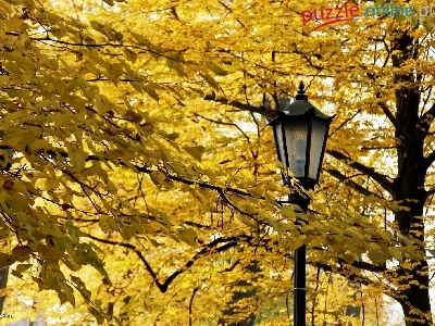 Puzzle Liście, Żółte, Jesienne, Latarnia
