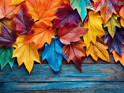 Jesień, Liście, Kolorowe, Grafika, Deski