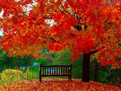 Puzzle Liście, Drzewo, Kolorowe, Ławka