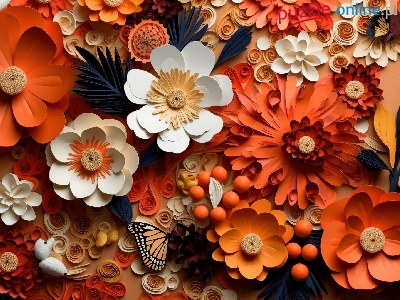Kwiaty, Liście, Kolorowe, Grafika, Motyl
