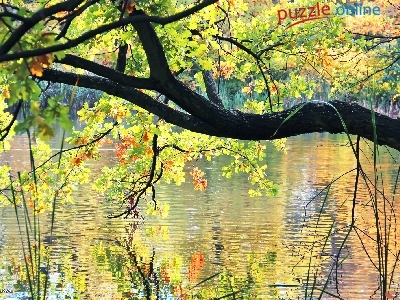 Liście, Jezioro, Woda, Dąb, Kolorowe, Odbicie