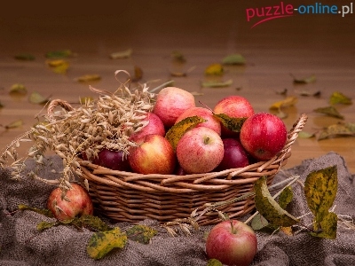 Puzzle Liście, Jabłka, Kosz, Kompozycja
