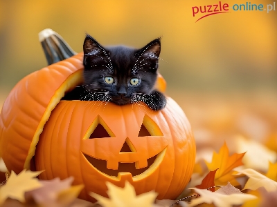 Liście, Grafika AI, Dynia, Halloween, Czarny, Kot, Jesień, Mały