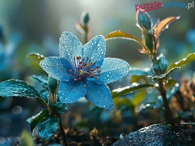 Puzzle Krople, Kwiat, Niebieski, Liście