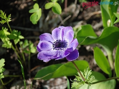 Puzzle Liście, Fioletowy, Kwiat, Zawilec