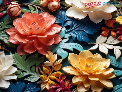 Puzzle Kwiaty, Grafika, Kolorowe, Liście
