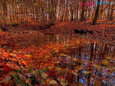 Liście, Jesień, Las, Kałuża
