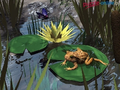 Puzzle Liście, Żaba, Lilia, Grafika