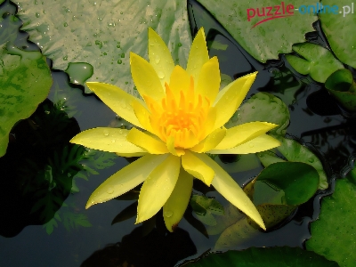 Puzzle Liście, Żółty, Kwiat, Lilia wodna