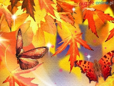 Liście, Motyle, Czerwono, Żółte, Jesień