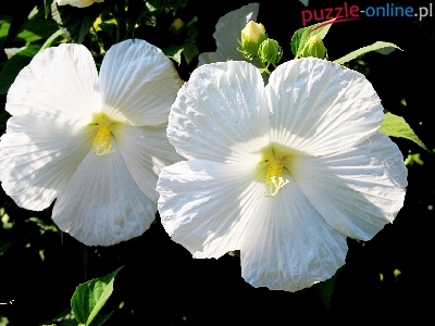 Liście, Biały, Ogród, Hibiskus, Pąki, Lato