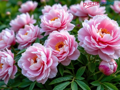 Puzzle Pąki, Różowe, Piwonie, Liście