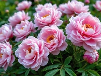 Pąki, Różowe, Piwonie, Liście