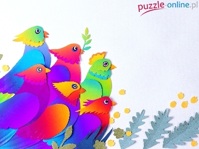 Puzzle Liście, Papugi, Papier Art