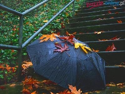 Puzzle Liście, Schody, Parasol, Jesień