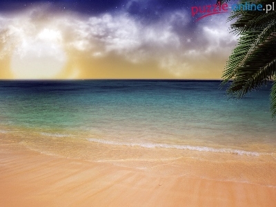 Puzzle Liście, Morze, Plaża, Palmy
