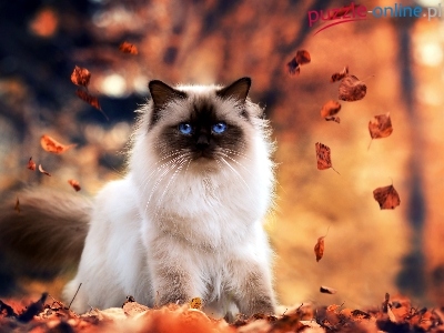Liście, Jesień, Kot, Syjamski, Park