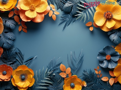 Tło, Pomarańczowe, Kwiaty, Liście, Grafika, Szare