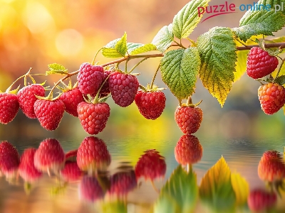 Odbicie, Gałązka, Maliny, Liście, Grafika, Woda