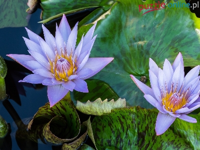 Puzzle Liście, Kwiaty, Lilia wodna, Pąki
