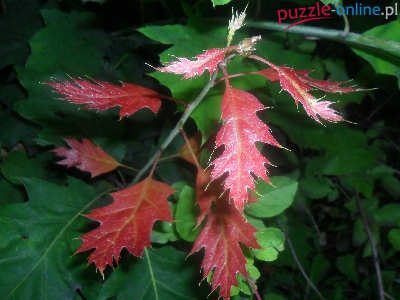 Puzzle Liście, Czerwone, Zielone, Dębu