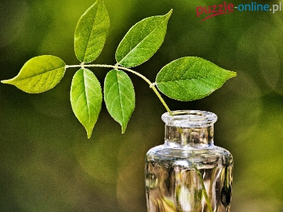 Puzzle Liście, Gałązka, Zielone, Butelka