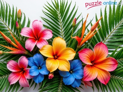Puzzle Zielone, Kolorowe, Kwiaty, Liście