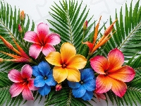 Zielone, Kolorowe, Kwiaty, Liście