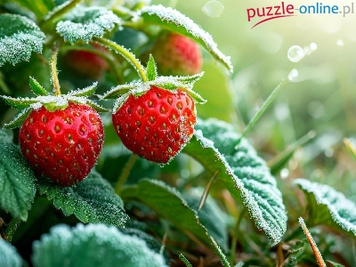 Puzzle Zielone, Oszronione, Truskawki, Liście