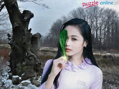 Listek, Drzewa, Dziewczyna, Brunetka, Fractalius
