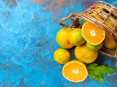 Owoce, Listek, Mandarynki, Koszyk, Odwrócony