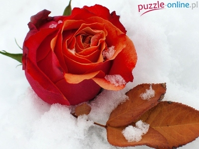 Puzzle Listek, Czerwona, Róża, Śnieg