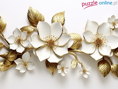 Tło, Grafika, Białe, Kwiaty, Złote, Gałązki, Białe, Listki
