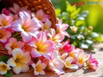 Różowe, Listki, Kwiaty, Koszyk, Wiklinowy