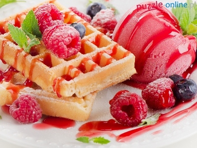 Owoce, Listki, Gofry, Maliny, Polewa, Lody, Borówka, Talerzyk