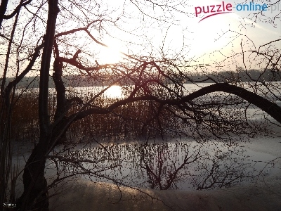 Puzzle Lód, Drzewa, Gałęzie, Odbicie