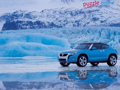 Puzzle Lód, Ośnieżone, Góry, Samochód