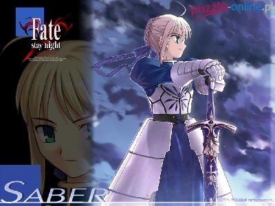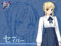 Saber, logo, twarz, napis, Fate Stay Night, dziewczyna