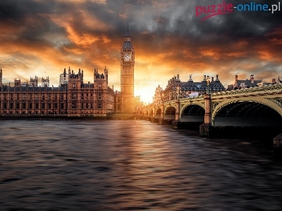 Most Westminsterski, Londyn, Zachód Słońca, Anglia, Rzeka Tamiza, Big Ben