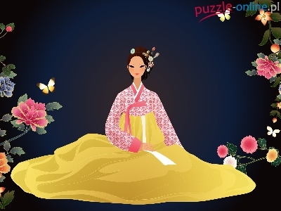 Puzzle Ludowy, Japonka, Strój, Kwiaty