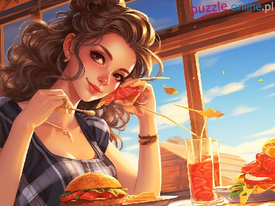 Drink, Sukienka, Dziewczyna, Lunch, Hamburger, Pomarańczowy