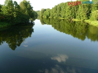 Puzzle Lustrzane, Rzeka, Drzewa, Odbicie