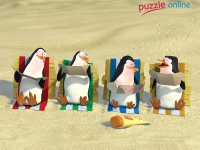 Puzzle Pingwiny, Pingwiny Z Madagaskaru, The Penguins of Madagascar, Plaża