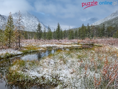 Magadan, Rosja, Zima, Kołymskie, Jezioro, Drzewa, Góry, Jacka Londona